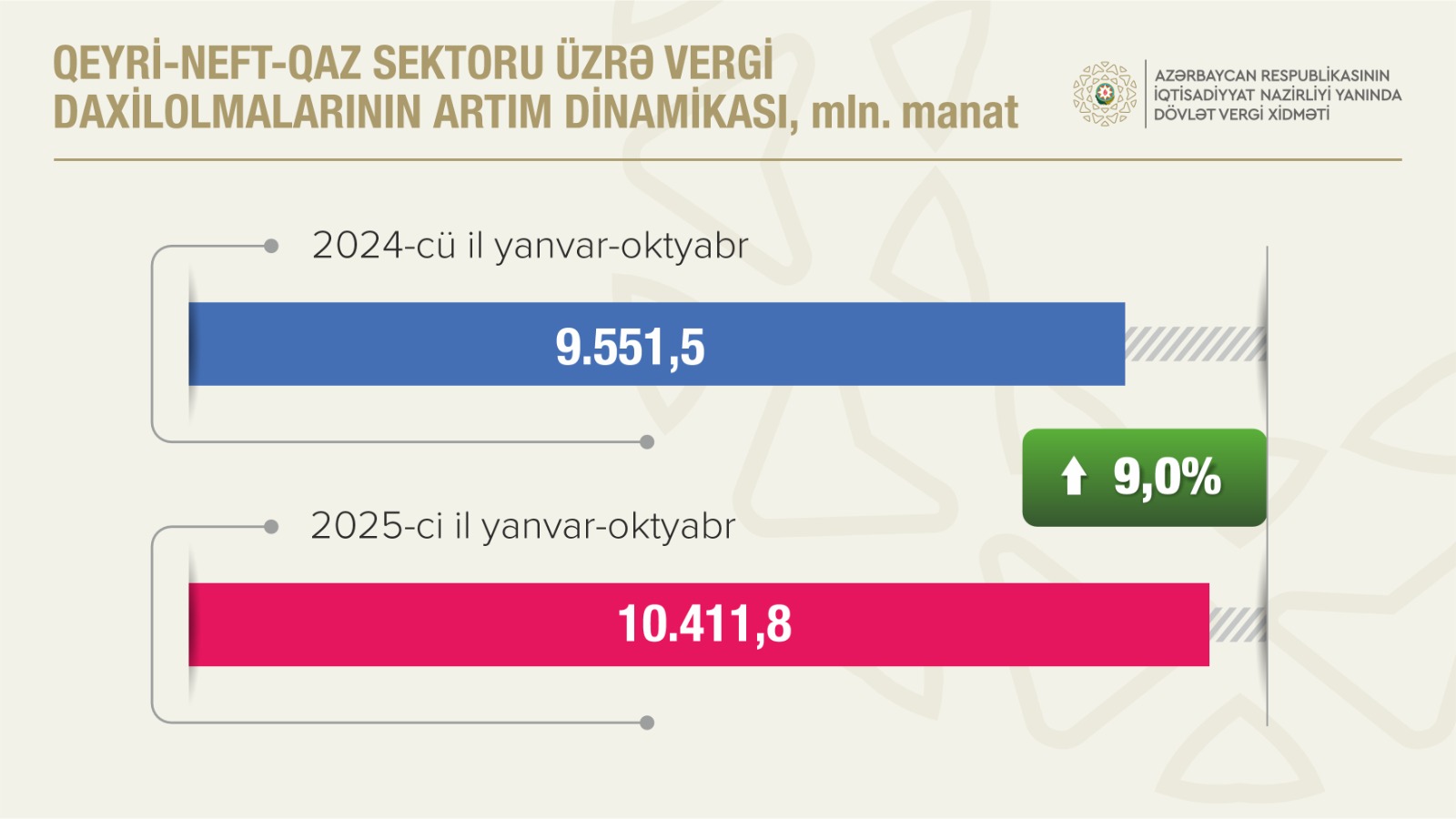 Vergilərin 72,4 faizi qeyri-neft-qaz sektorunun payına düşüb