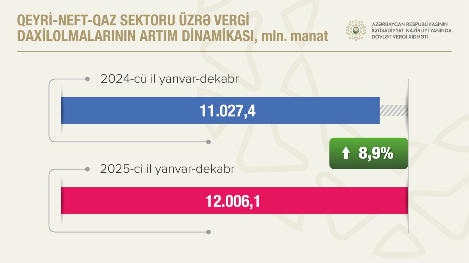 2025-ci ildə qeyri-neft-qaz sektorundan vergi daxilolmaları 8,9 faiz artıb