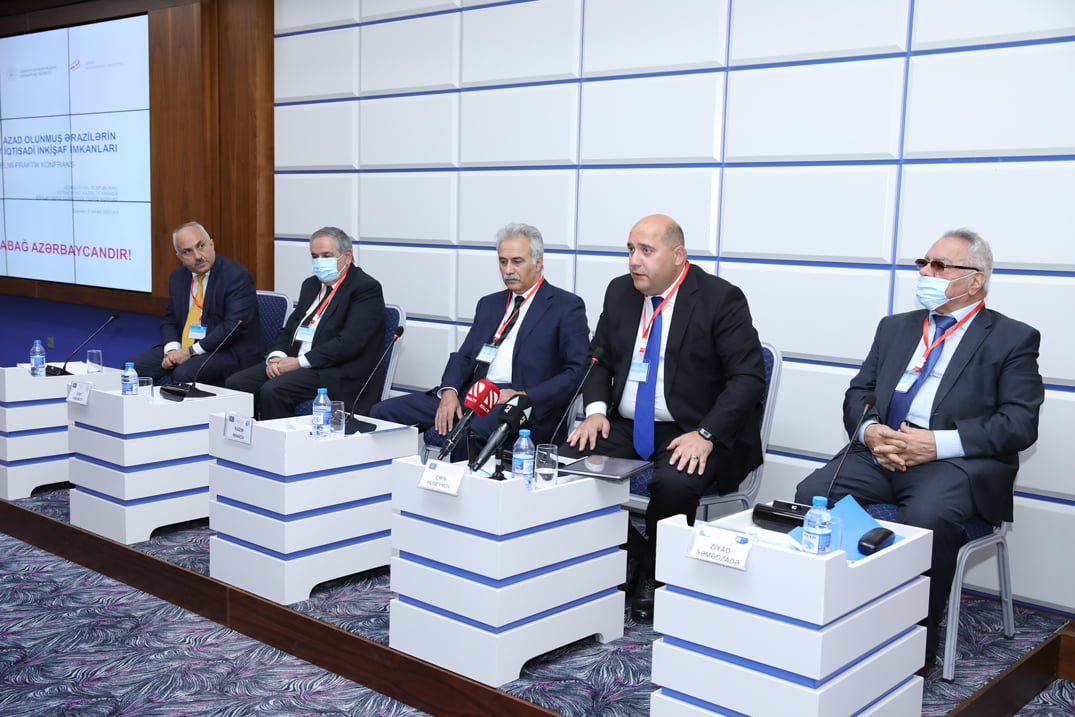 İqtisadiyyat nazirinin müavini Sahib Ələkbərov Azərbaycan Respublikasının Prezidenti, müzəffər Ali Baş Komandan İlham Əliyevin qətiyyəti, hərbi və siyasi müstəvidə atdığı düşünülmüş addımlar, Ordumuzun şücaəti nəticəsində qazanılan böyük Zəfəri, igid oğullarımızın döyüş məharətini vurğulayıb. Qeyd edilib ki, dövlət başçısı tərəfindən Qarabağın “Yaşıl zona” elan edilməsi, müasir sənaye parkları və aqroparkların yaradılması, həmçinin bu ərazilərdə fəaliyyət göstərəcək sahibkarlar üçün nəzərdə tututlan güzəştlər regionun dirçəldilməsinə böyük imkanlar deməkdir. İşğaldan azad olunmuş ərazilərdə innovativ kənd təsərrüfatı modellərinin tətbiq olunması, dağ-mədən sənayesinin yeni texnologiyalar əsasında inkişaf etdirilməsi, müasir texnologiyalara əsaslanan nəqliyyat-loqistika sisteminin qurulması, bərpa olunan enerjidən istifadə etməklə ekoloji tarazlığın təmin edilməsi, müasir tələblərə cavab verən mütəxəssislərin hazırlanması innovativ iqtisadi inkişafın əsas istiqamətlərindəndir. Dövlət başçısının müvafiq fərmanları ilə Ağdam və “Araz Vadisi İqtisadi Zonası” sənaye parklarının yaradılmasının əhəmiyyətini vurğulayan nazir müavini bu ərazilərdə logistika və ticarət fəaliyyətinin həyata keçirilməsi, xidmətlərin göstərilməsi, sənaye istehsalının dəstəklənməsi, əhalinin dayanıqlı məşğulluğunun təmin edilməsi üçün yeni imkanlar yaradacağını diqqətə çatdırıb. Qeyd edilib ki, işğaldan azad edilmiş ərazilərdə sahibkarlıq fəaliyyətinin həyata keçirilməsi ilə bağlı İqtisadiyyat Nazirliyinə çoxsaylı müraciətlər daxil olur. İnvestisiya layihələrinin prioritetliyi təhlil edilir, potensial layihələr müəyyənləşdirilir və informasiya bazasına daxil edilir.