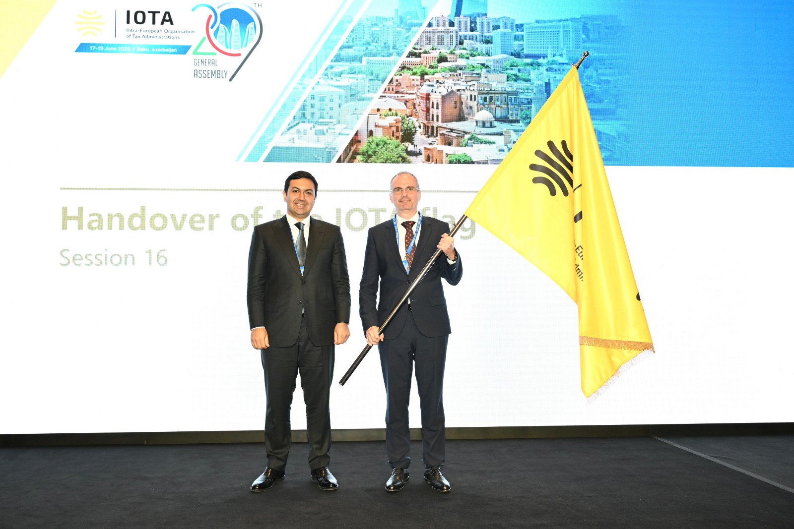 Daha sonra IOTA prezidentliyinin rəmzi hesab edilən təşkilatın bayrağı Orxan Nəzərli tərəfindən Macarıstan Milli Vergi və Gömrük Administrasiyasının sədri Ferens Vaquyhelyə təqdim olunub.