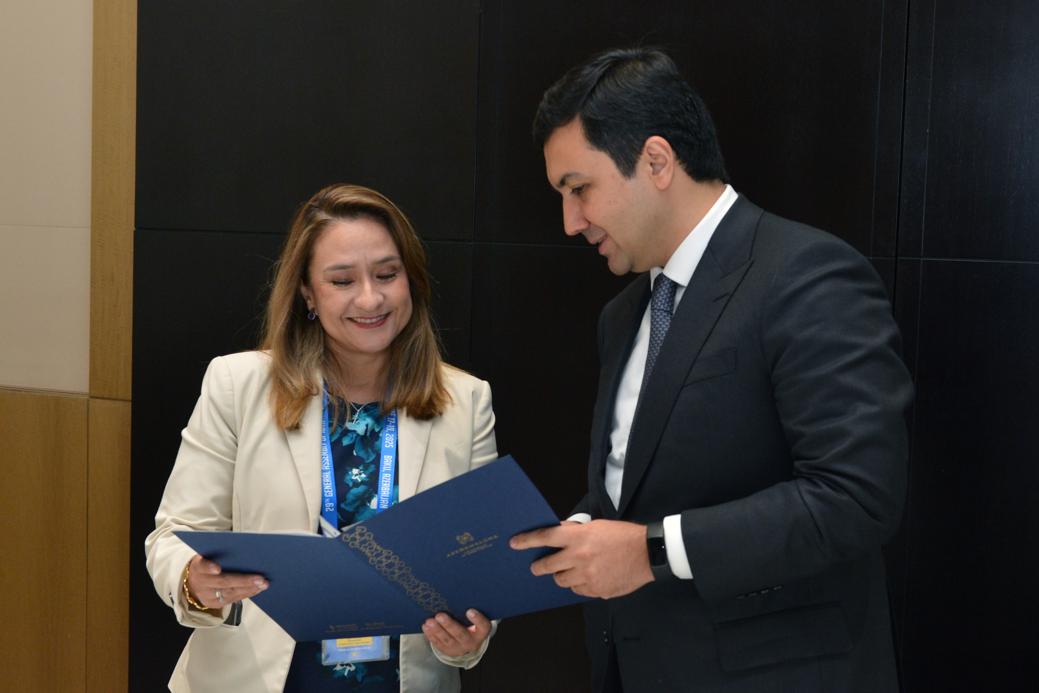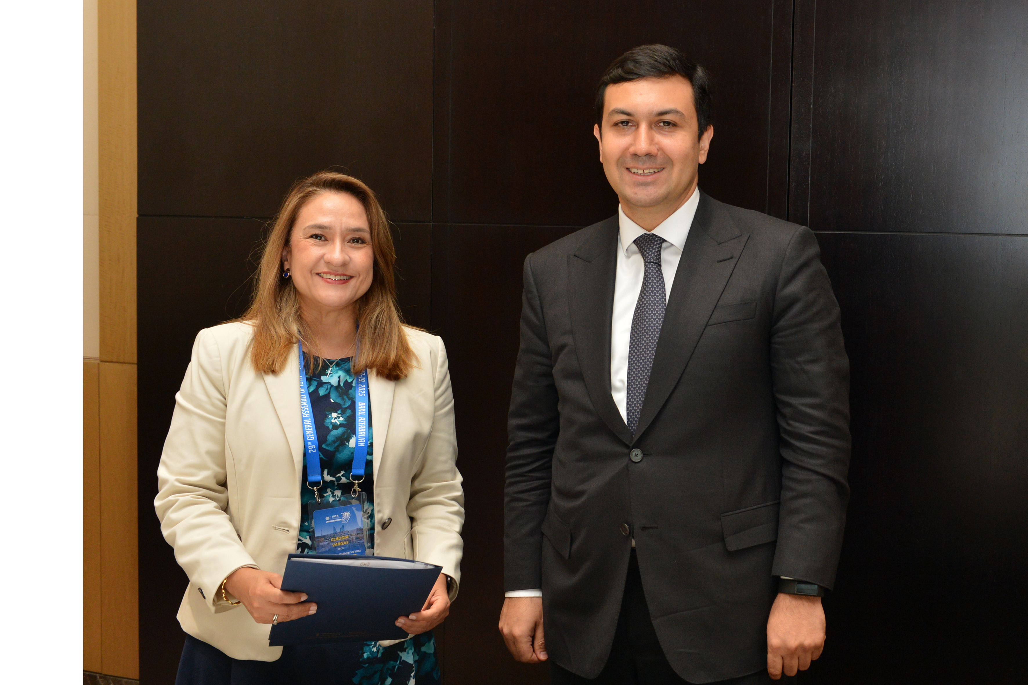Avropadaxili Vergi Administrasiyaları Təşkilatının (IOTA) Bakıda keçirilən 29-cu Baş Assambleyası çərçivəsində Dövlət Vergi Xidmətinin rəisi Orxan Nəzərli İqtisadi Əməkdaşlıq və İnkişaf Təşkilatının (OECD) Vergi İnzibatçılığı Forumunun (FTA) ƏDV və vergi inzibatçılığı şöbəsinin rəhbəri Klauda Vargas ilə görüş keçirib.