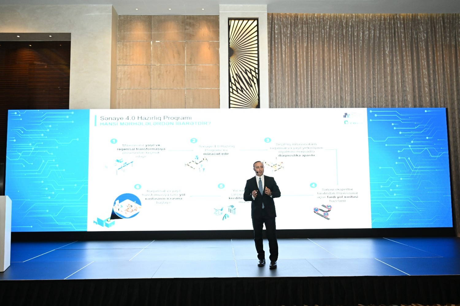 Tədbir çərçivəsində “Sənaye 4.0 Hazırlıq Proqramı”nın pilot mərhələsini uğurla başa vurmuş “METAK” şirkətinin təsisçisi Alik Kərimov, “Azerfloat” şirkətinin baş direktoru Emil Həsənov və “STP” şirkətlər qrupunun baş icraçı direktoru v.i.e Ələkbər Abbaslı çıxış edərək proqramın müəssisələrin fəaliyyətinə və məhsuldarlığına müsbət təsirlərindən bəhs ediblər.