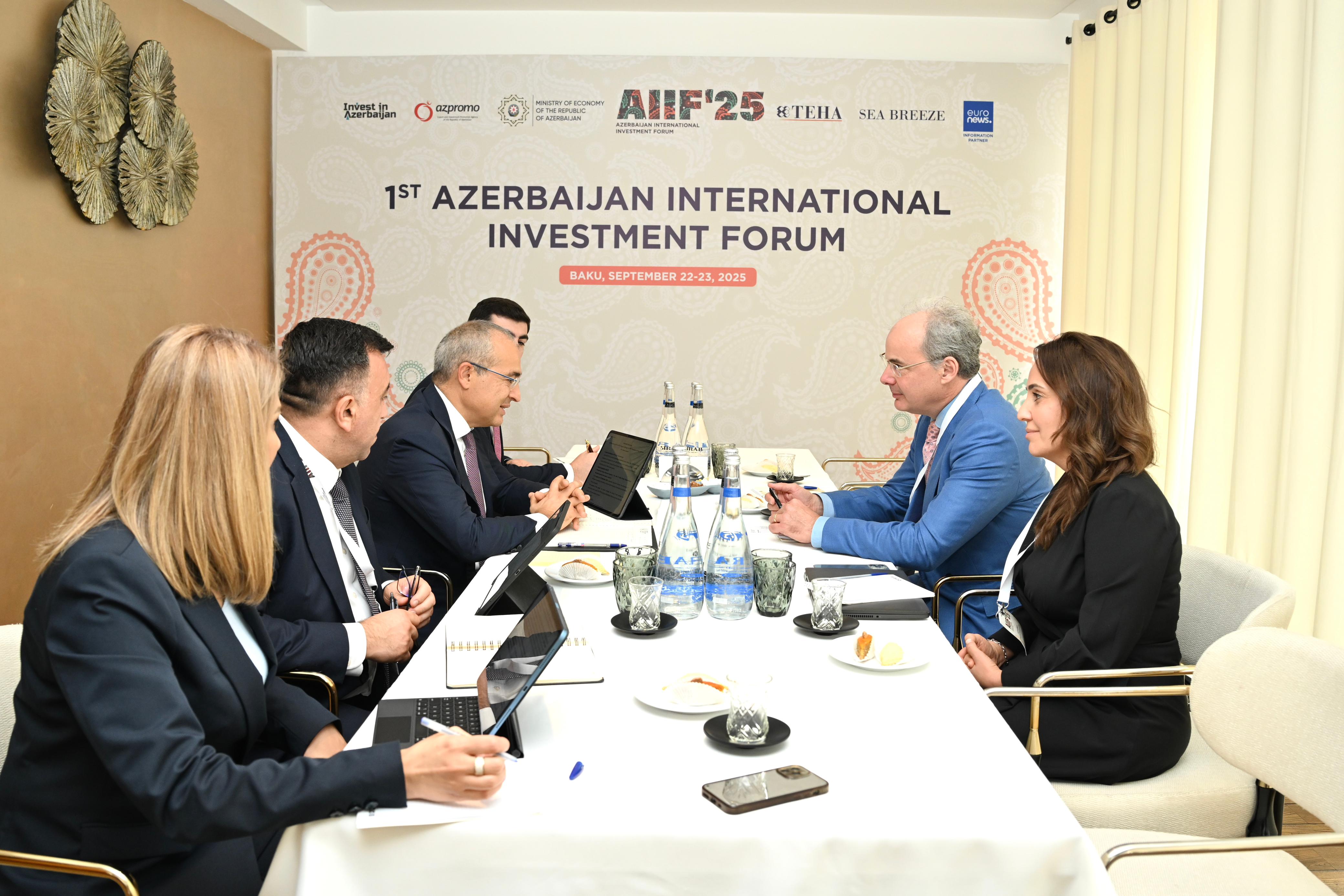 Azərbaycan Respublikasının Prezidenti cənab İlham Əliyevin himayəsi altında Bakıda keçirilən 1-ci Azərbaycan Beynəlxalq İnvestisiya Forumu çərçivəsində iqtisadiyyat naziri Mikayıl Cabbarov Beynəlxalq Maliyyə Korporasiyasının Avropa üzrə Dövlət özəl tərəfdaşlığı sahəsində tranzaksiya məsləhət xidmətləri üzrə regional meneceri Tomas Lübek ilə görüşüb.