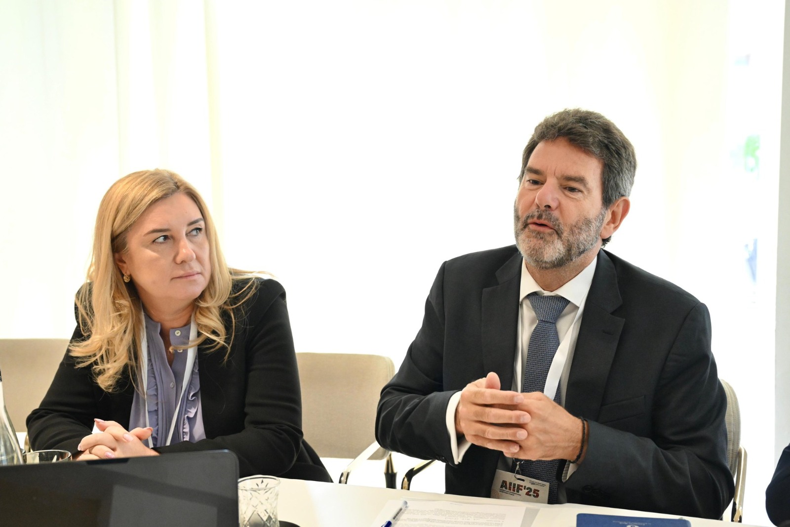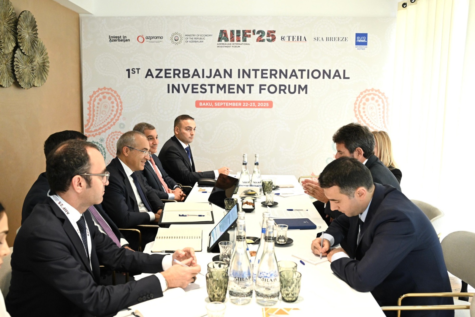 İqtisadiyyat naziri Mikayıl Cabbarov 1-ci Azərbaycan Beynəlxalq İnvestisiya Forumu çərçivəsində Avropa Yenidənqurma və İnkişaf Bankının (AYİB) Qafqaz üzrə regional direktoru Alkis Drakinos ilə görüşüb.