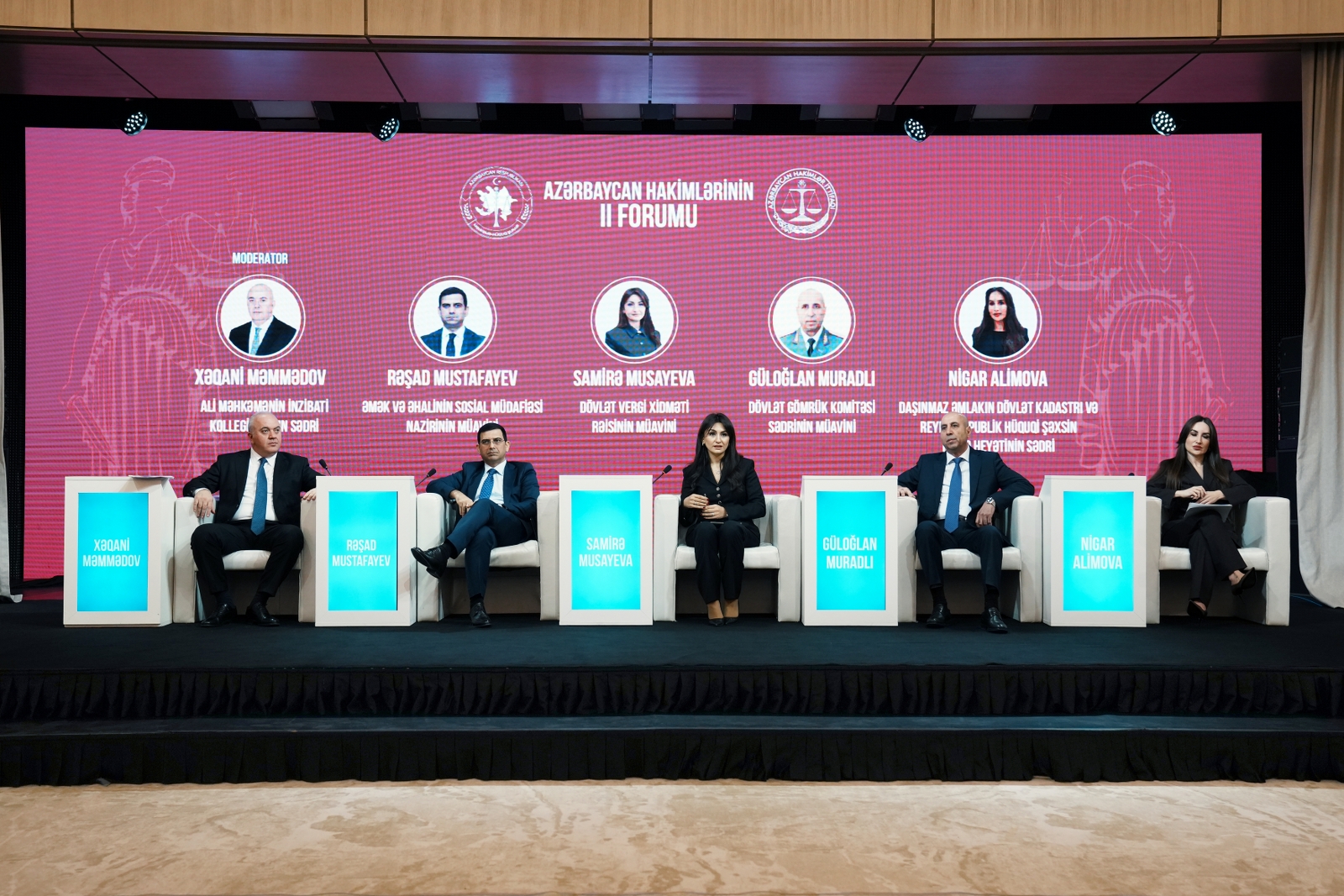 İqtisadiyyat Nazirliyi yanında Dövlət Vergi Xidmətinin (DVX) rəis müavini Samirə Musayeva Azərbaycan Hakimlərinin II Forumunda iştirak edib. Samirə Musayeva dövlət büdcəsinə fiskal yığımların 79,1%-nin DVX tərəfindən təmin olunduğuna diqqət çəkərək, bunun 93%-nin məhz könüllü vergi daxilolmaları hesabına səfərbər edildiyini vurğulayıb.