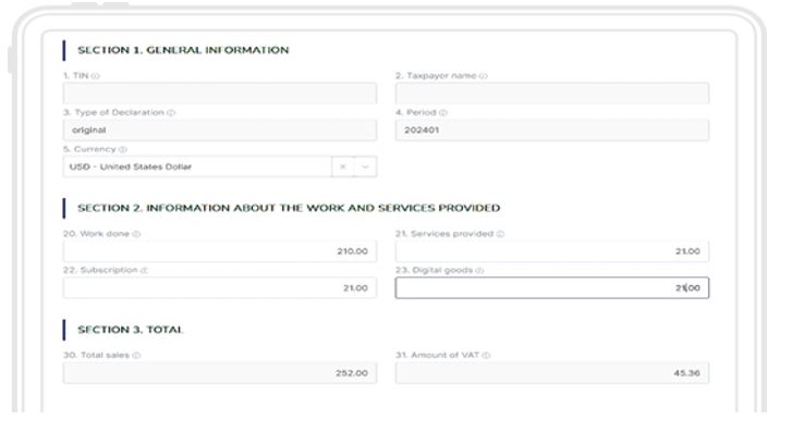 Answer: The VAT return is designed in a simple and user-friendly format. It is submitted electronically based on minimal data requirements (total turnover and calculated VAT) to ensure that non-residents can easily and efficiently comply with their tax obligations.